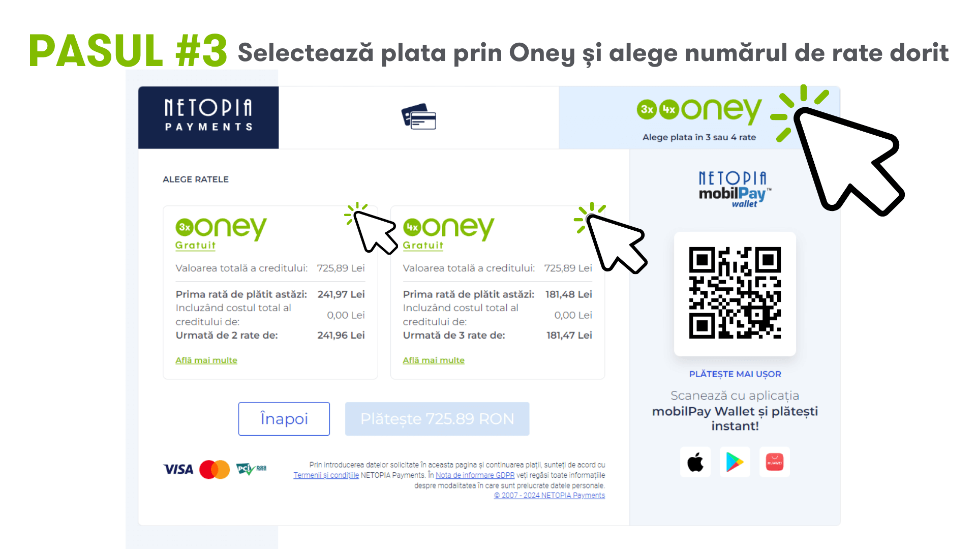 Pentru mai multe detalii, accesați următorul link : 3x 4x Oney | Oney (oney-bank.ro)