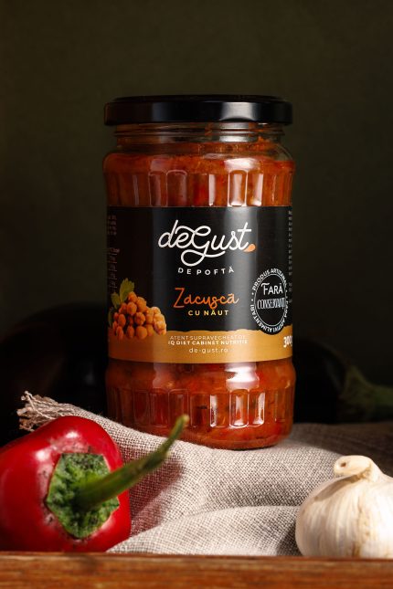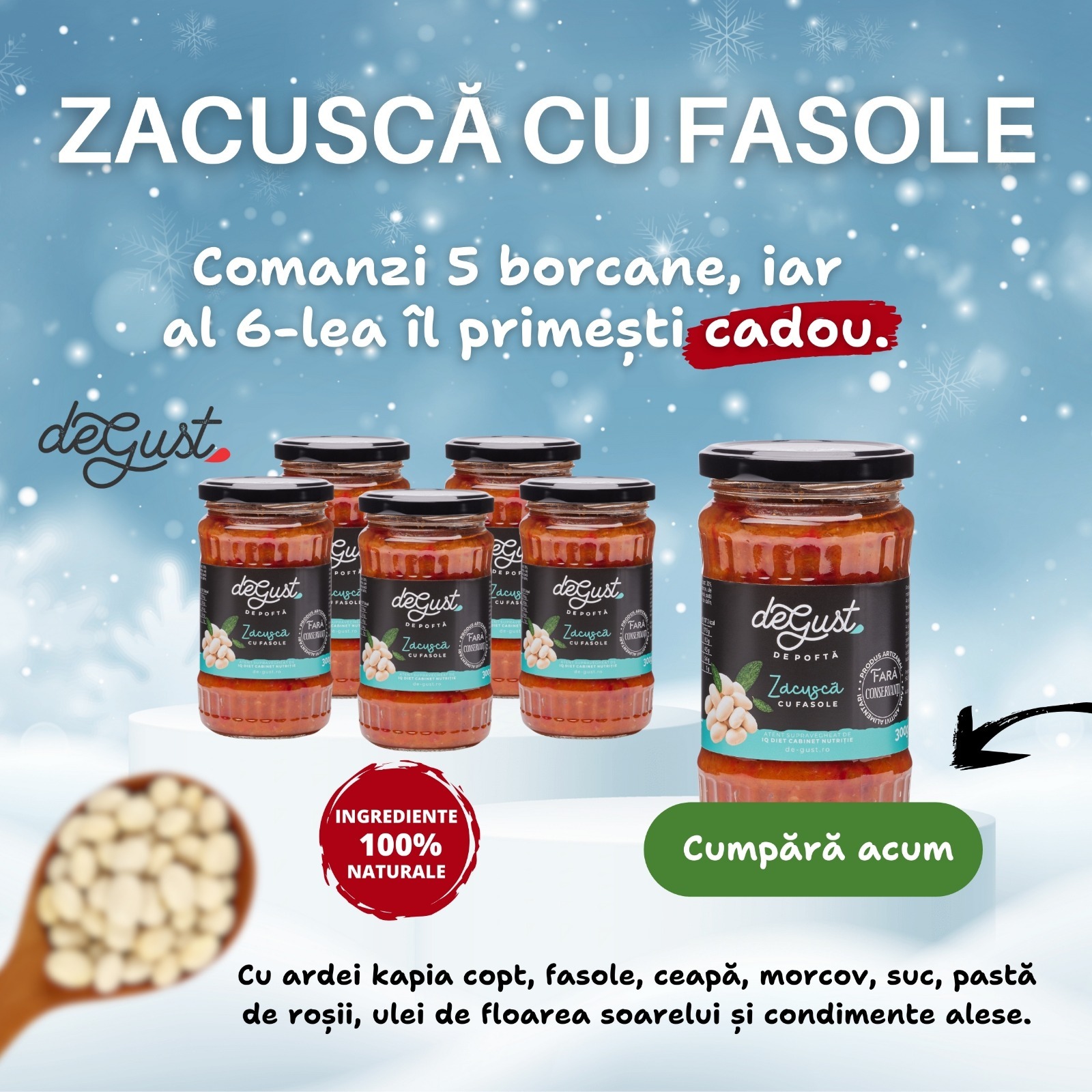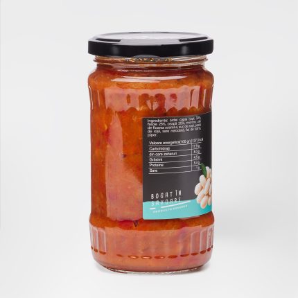 Zacusca cu fasole DeGust este acel gust cald de acasă: legume coapte pe îndelete, fasole fiartă exact cât trebuie și un sos bogat de roșii, toate gătite lent ca să păstrăm aromele vii și textura cremoasă. Fără aditivi, fără conservanți, doar ingrediente naturale și pricepere. E acel borcan la care revii când vrei un prânz rapid, o gustare sănătoasă sau un aperitiv care să adune familia la masă.
