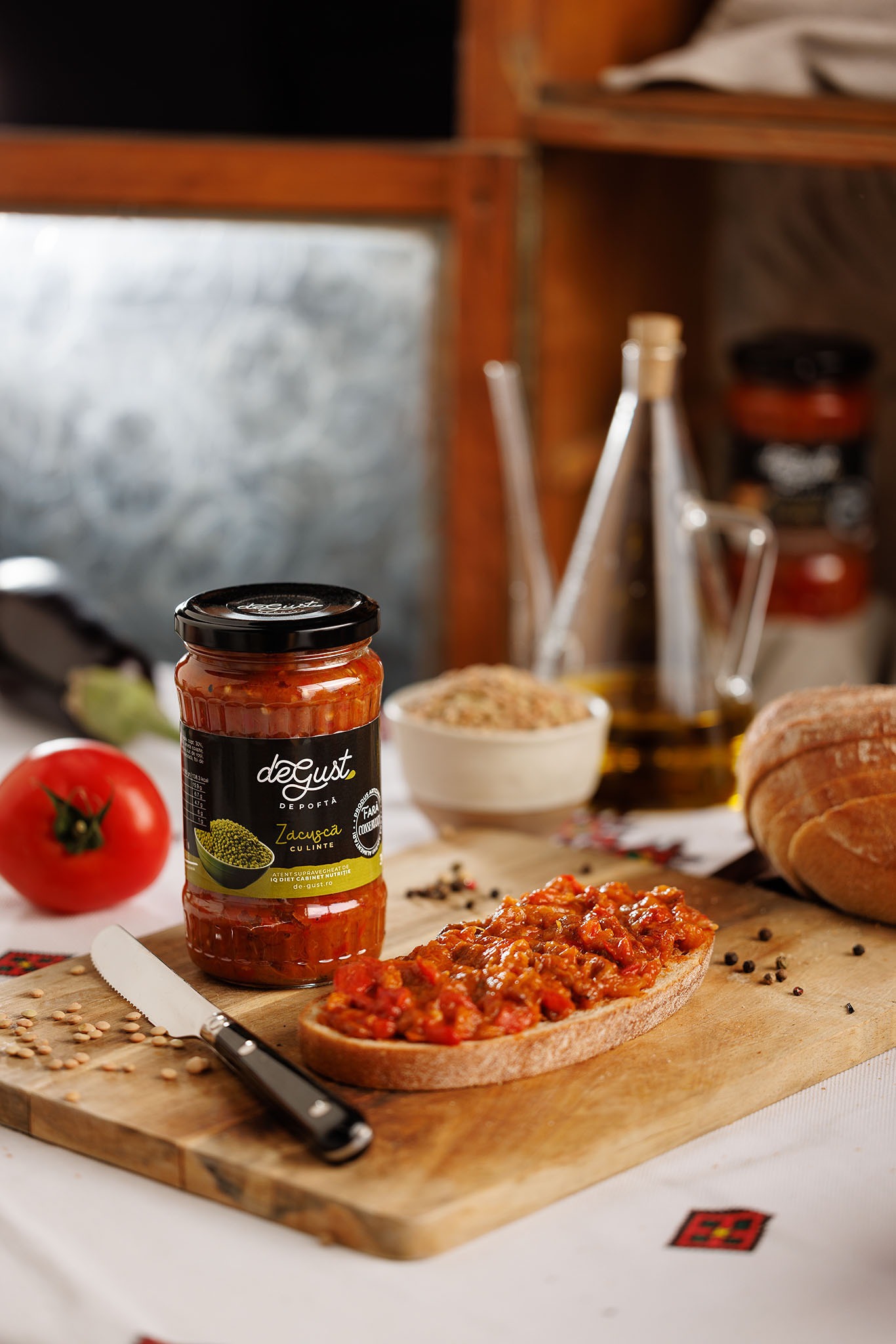 • Ardei capia copt (30%) – dulceața ardeilor copți conferă savoarea inconfundabilă a zacuștilor tradiționale.