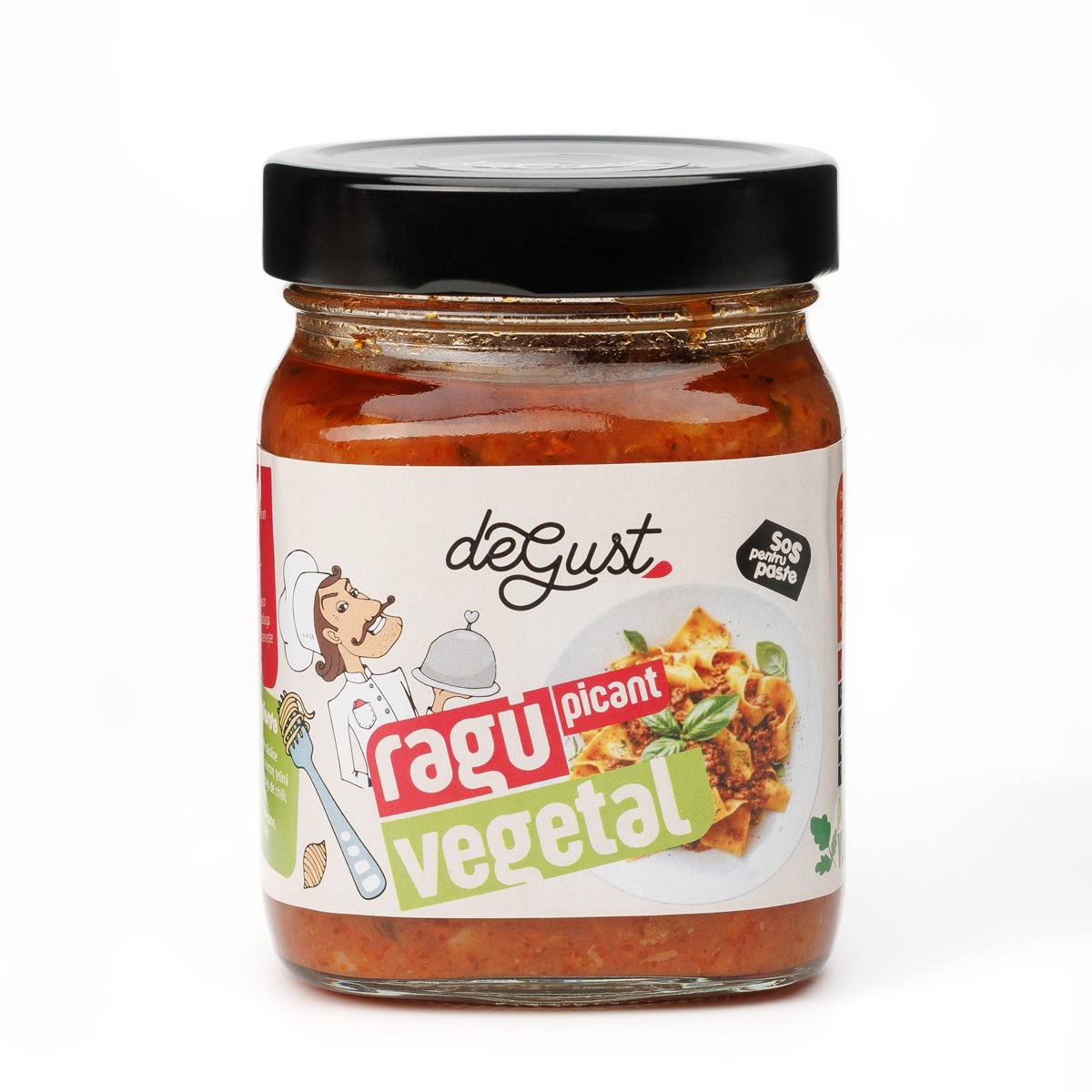 Ragù Vegetal Picant DeGust este un sos pentru paste picant obținut prin gătire lentă, din roșii pasate, legume și ulei de măsline extravirgin. Iuțeala este bine dozată, astfel încât sosul pentru paste picant să fie plăcut și ușor de consumat, potrivit atât pentru mesele zilnice, cât și pentru rețete mai consistente.